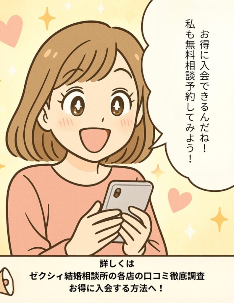 ポイント: 成婚率データを見ても、ゼクシィ結婚相談所は「費用が安いのに一定の成果を出せている」ことが分かります。