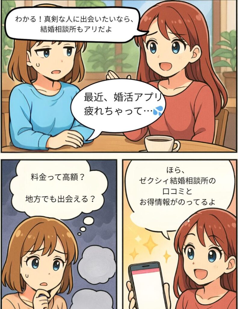 ポイント: ゼクシィ結婚相談所の口コミは「サポート体制は担当者次第」「料金と気軽さは高評価」という傾向が強いです。