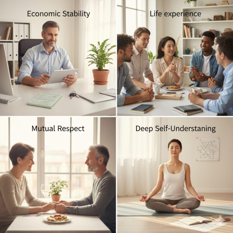 - 人生経験:落ち着きと包容力が自然とにじみ出る。若い頃の失敗や成功も含め、多くの経験を積んできたからこそ、人の気持ちを汲み取り、穏やかに接することができます。恋愛や結婚生活においても、相手を受け止める余裕が自然と備わっているのが大きな魅力です。