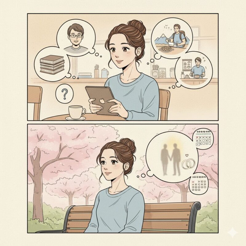 👉意識したこと:条件を3つに絞り「譲れない基準」を整理。ある40代女性は「再婚・子持ちOK」と条件を緩めたことで出会いが広がり、半年で成婚に至りました(R婚公式体験談より)。