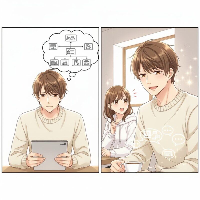 でも実際はそうではありません。モテる人ほど、特別な才能を持っているわけではなく、“会話の型(テンプレート)”を自然に使っているだけなんです。つまり、あらかじめ用意されたパターンを繰り返し活用しているので、緊張しても言葉に詰まることが少なく、結果的に「余裕のある人」に見えるのです。ここでは、その考え方と具体的な方法を分かりやすく紹介します。